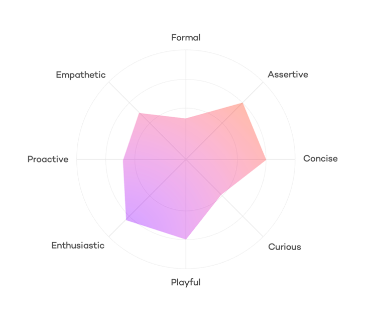 Verhaltensmerkmale | Fragt nach Präferenzen, gibt kurze Antworten und lässt User Weg bestimmen, bleibt dabei aber engagiert |